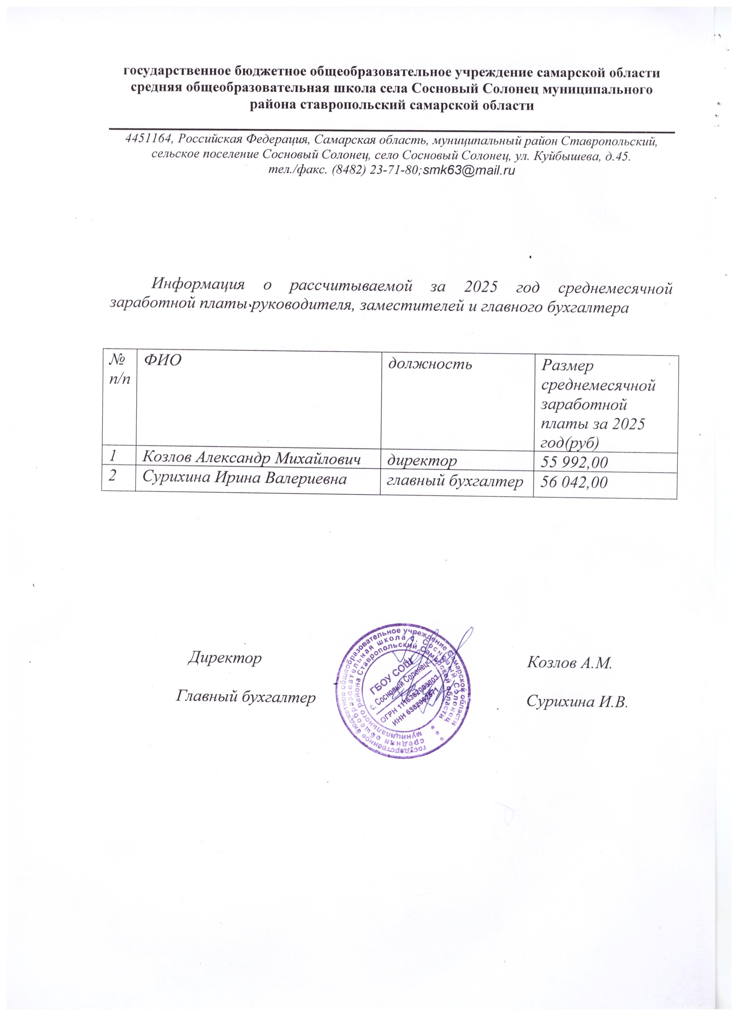 Информация о рассчитываемой за календарный год среднемесячной заработной плате руководителей, их заместителей и главного бухгалтера